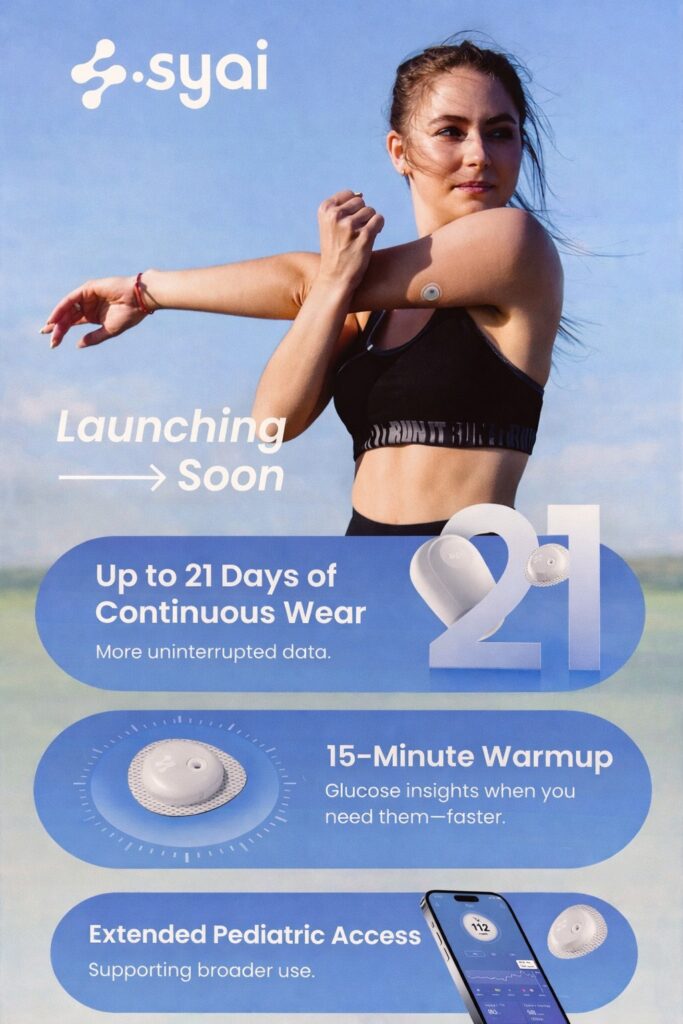 Zaujímavý praktický posun je aj na úrovni samotných senzorov – napr. Syai predstavil 21-dňový CGM senzor, čo znamená dlhšie kontinuálne sledovanie bez prerušení a tým pádom aj viac kvalitných dát pre analýzu a predikciu.