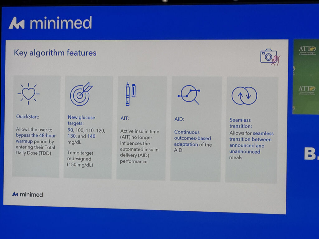 Jednou z výrazných technologických noviniek bol nový algoritmus MiniMed Vivera, ktorý sa snaží odstrániť jednu z posledných veľkých bariér dnešných komerčných hybridných systémov, a to potrebu manuálne oznamovať jedlo. Tento prístup je postavený na tom, že systém sa postupne učí správanie používateľa a dokáže reagovať na príjem potravy aj bez explicitného bolusu, čím sa približujeme k reálnemu „closed-loop“ systému bez nutnosti počítania sacharidov.