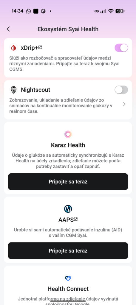 Následne som začal senzor Syai Ultra používať s AAPS, kde je možné využiť aj priame odosielanie dát z oficiálnej aplikácie. V mojom prípade však preferujem integráciu cez xDrip+, najmä pre lepšie možnosti konfigurácie a flexibilnejší manažment alarmov.